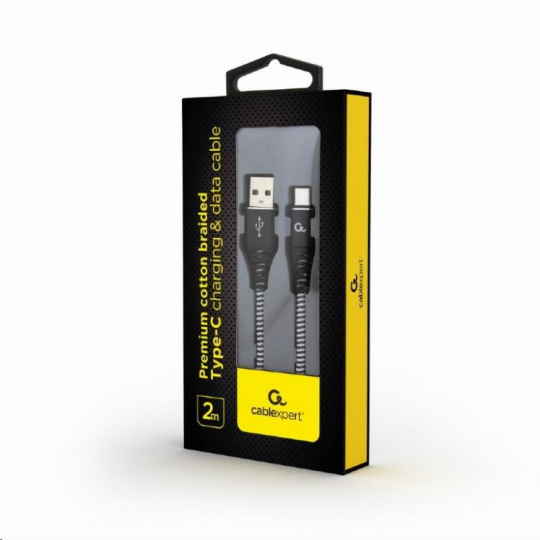 GEMBIRD CABLEXPERT USB 2.0 Kábel AM na typ C (AM/CM), 2 m, opletený, čiernobiely, blister, PREMIUM KVALITA