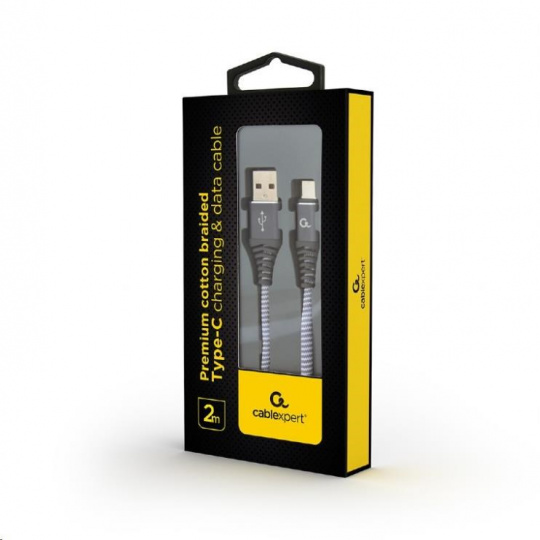 GEMBIRD CABLEXPERT USB 2.0 Kábel AM na typ C (AM/CM), 2 m, opletený, sivý a biely, blister, PREMIUM KVALITA