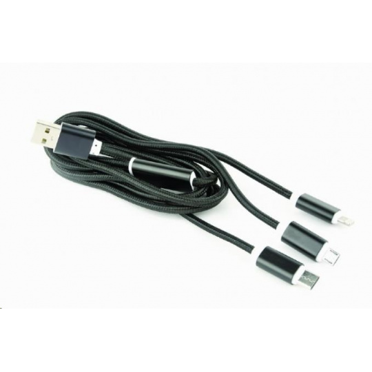 GEMBIRD kábel CABLEXPERT USB A Male/Micro B + Type-C + Lightning, 1 m, opletený, čierny, blister