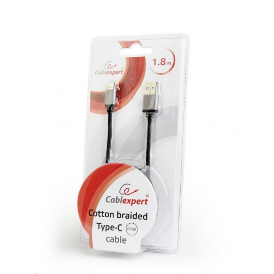 GEMBIRD CABLEXPERT kábel USB na USB-C (AM/CM), 1,8 m, opletený, čierny, blister
