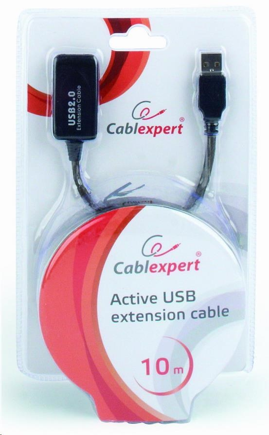 GEMBIRD USB 2.0 aktívny predlžovací kábel, 10 m, čierny