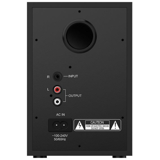 Multimediálny reproduktorový systém v konfigurácii 2.1 s celkovým výkonom 10 W. 3" subwoofer ponúka dokonale hlboké basy a dva 2,5" satelity zabezpečia vysoké vokály. Na prednom paneli sa nachádza samostatné ovládanie hlasitosti a basov. Pripojenie je realizované pomocou 3,5 mm jack konektora.