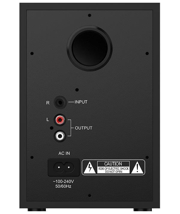 Multimediálny reproduktorový systém v konfigurácii 2.1 s celkovým výkonom 10 W. 3" subwoofer ponúka dokonale hlboké basy a dva 2,5" satelity zabezpečia vysoké vokály. Na prednom paneli sa nachádza samostatné ovládanie hlasitosti a basov. Pripojenie je realizované pomocou 3,5 mm jack konektora.