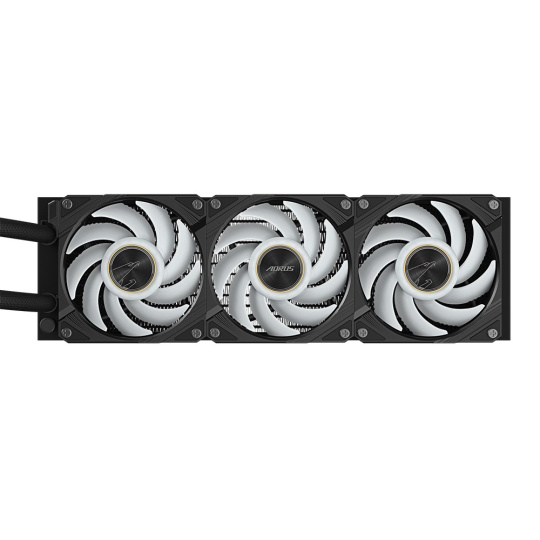 - Vodný blok a ventilátor majú gradientné osvetlenie a osvetlenie ventilátora ARGB je možné synchronizovať s ostatnými zariadeniami AORUS prostredníctvom GCC (GIGABYTE Control Center).