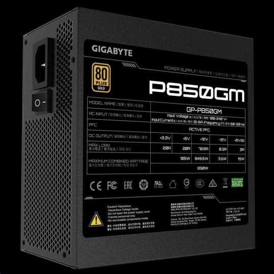 Napájací zdroj GIGABYTE P850GM, 850W, 80plus gold, modulárny, 120 mm ventilátor