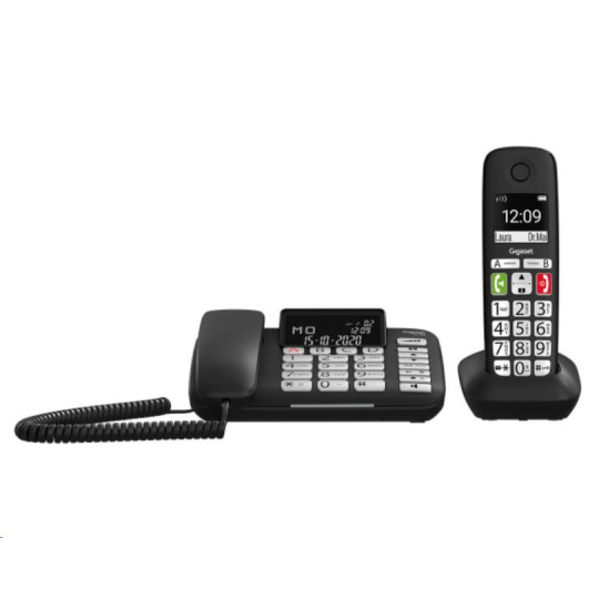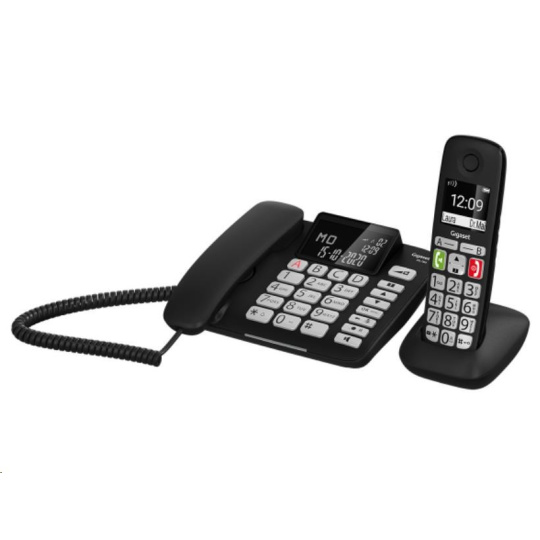 • tieto dve dokonale zladené zariadenia fungujú ako kombinovaná súprava a zaručujú maximálnu voľnosť pohybu vďaka prepojeniu káblového telefónu na pevnom mieste s flexibilným slúchadlom