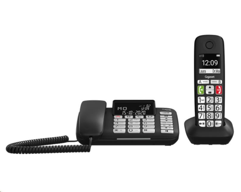 • tieto dve dokonale zladené zariadenia fungujú ako kombinovaná súprava a zaručujú maximálnu voľnosť pohybu vďaka prepojeniu káblového telefónu na pevnom mieste s flexibilným slúchadlom