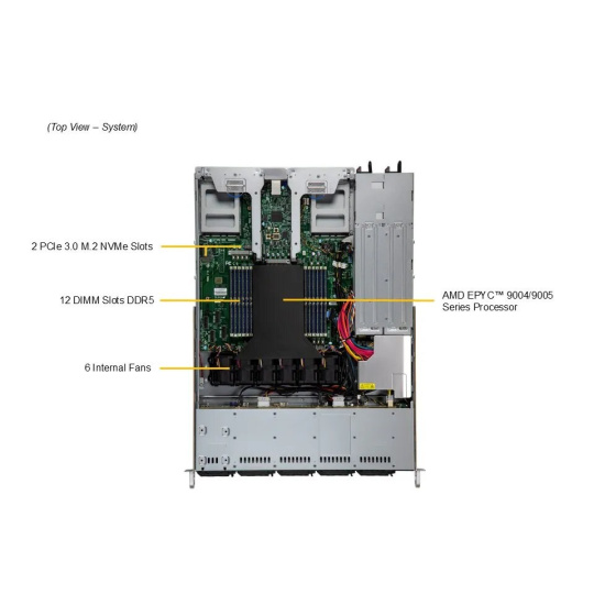 | Procesory | Duálne AMD EPYC™ 9004/9005* Series Procesory (*Podpora AMD EPYC™ 9005 vyžaduje revíziu základnej dosky 2.x) |