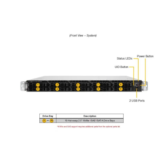 | Úložisko | 8 hot-swap 2.5" NVMe/SATA/SAS pozícií, voliteľne až 12 pozícií s ďalšími komponentmi |
