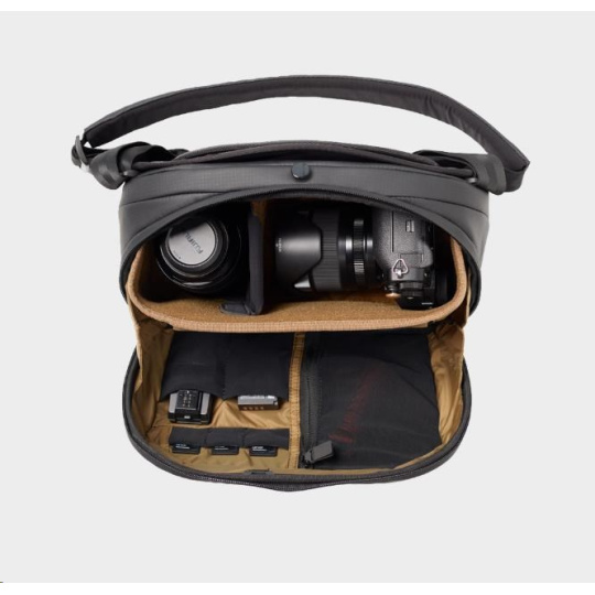 Vďaka rovnakým pevným a vodoodpudivým materiálom ako naše brašna McKinnon 25L, má Sling 8L dostatok priestoru na pohodlné uloženie bezzrkadlovky alebo malej DSLR s výkonom. Otvor je vystužený pevnou, drôtovou konštrukciou pre rýchly prístup a dokonalú viditeľnosť. Zaujme rýchloupínací systém, vďaka ktorému bude prístup k vášmu vybaveniu hračka. Na vnútornej strane dvierok je elastická sieťovaná kapsa na zips a menšie kapsy, určené na pamäťové karty a batérie do fotoaparátu.