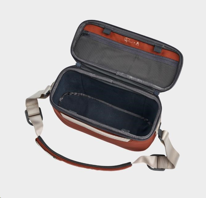 Odolný kovový rám zabezpečuje, že si taška zachová svoj tvar, a vnútro z materiálu Nylex pevne drží deliaci suchý zips. Inovatívne priehradky vo tvaru harmoniky, niektoré s pridanou policou, ďalej maximalizujú priestor. Tento záväzok je kombináciou funkčnosti a remeselného spracovania na mieru fotografom.