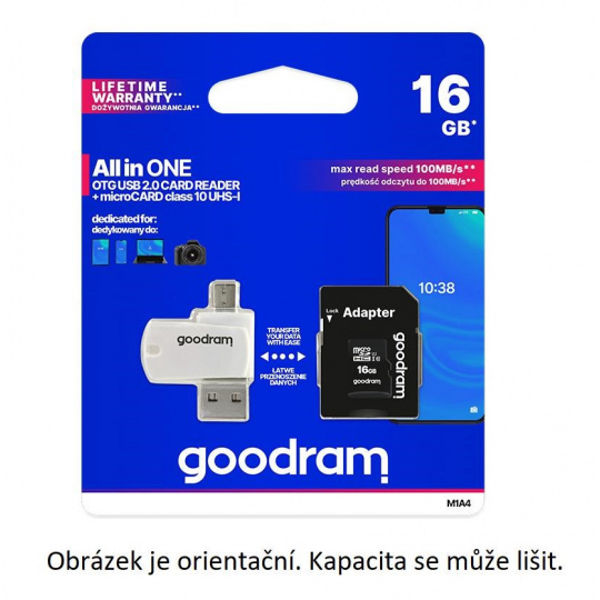 Karta GOODRAM microSDXC 128GB M1A4 All-in-one (R:100/W:10 MB/s), UHS-I Class 10, U1 + adaptér + čítačka/prečítačka kariet OTG