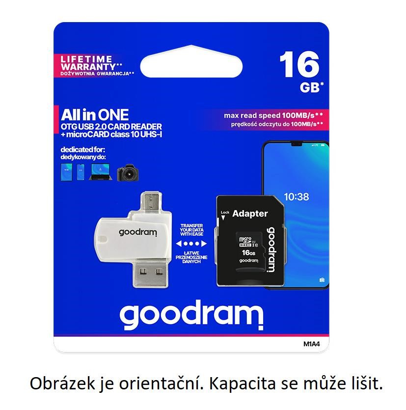 Karta GOODRAM microSDXC 128GB M1A4 All-in-one (R:100/W:10 MB/s), UHS-I Class 10, U1 + adaptér + čítačka/prečítačka kariet OTG