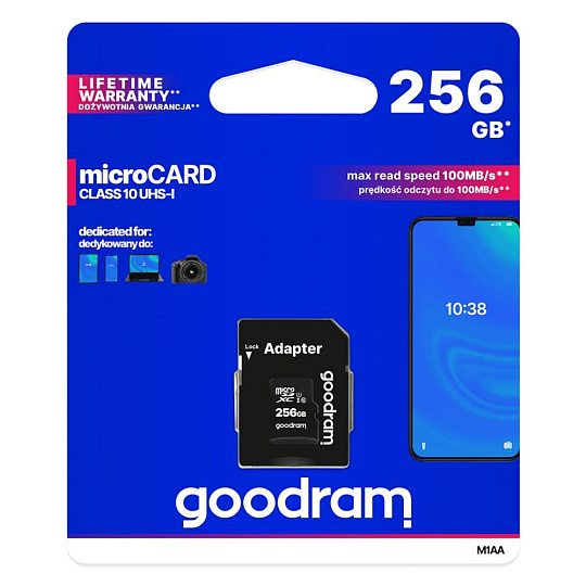 Karta GOODRAM microSDXC 256GB M1AA (R:100/W:10 MB/s), UHS-I Class 10, U1 + adaptér