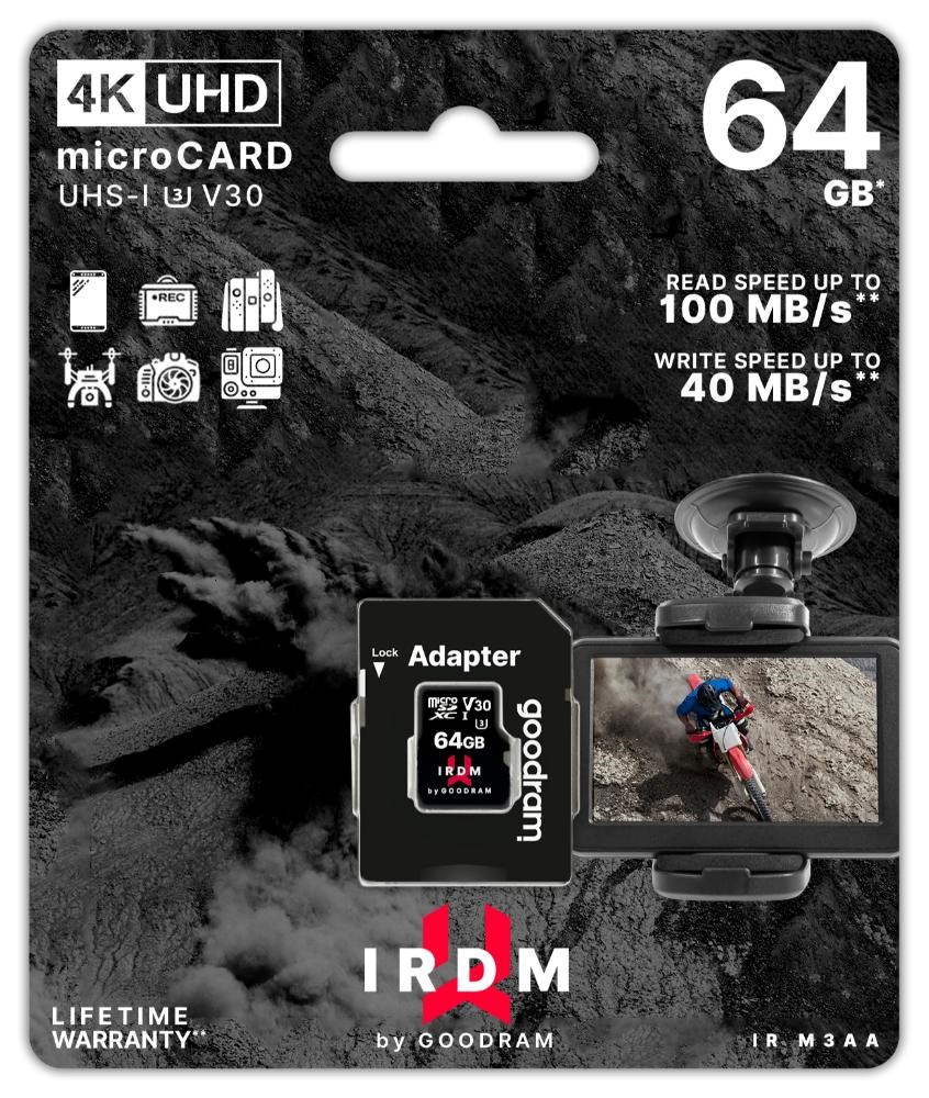 GOODRAM microSDXC karta 64GB IRDM (R:100/W:70 MB/s), UHS-I Class 10, U3, V30 + Adapter