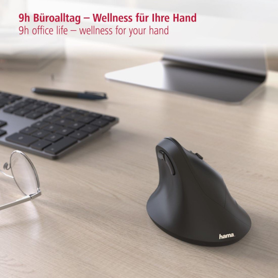 Vertikálna ergonomická bezdrôtová myš Hama EMW-500, 6 tlačidiel, čierna