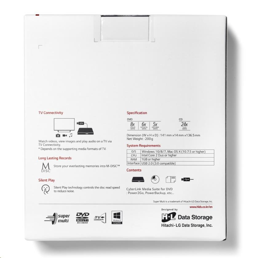 HITACHI LG - externá mechanika DVD-W/CD-RW/DVD±R/±RW/RAM GP57ES40, Slim, Silver, box+SW