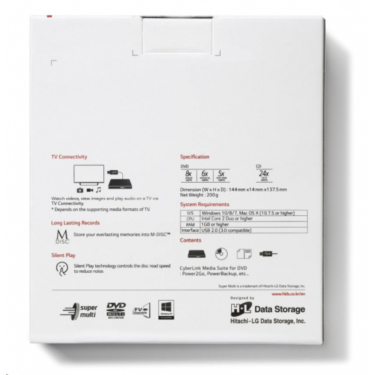 HITACHI LG - externá mechanika DVD-W/CD-RW/DVD±R/±RW/RAM GP60NB60, Slim, čierna, box+SW