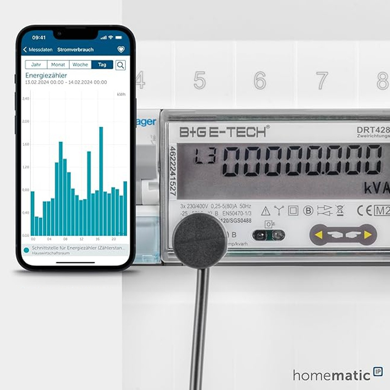 Rozhranie je vhodné pre priebehové alebo podružné elektromery, ktoré zaznamenávajú príkon fotovoltaického systému alebo spotrebu energie z tepelného čerpadla. Údaje sa vždy zobrazuje v aplikácii Homematic IP. Inštalácia prebieha v niekoľkých krokoch priamo na elektromeri. Informáciu o tom, koľko impulzov na kWh váš elektromer dodáva, nájdete priamo na elektromeri.