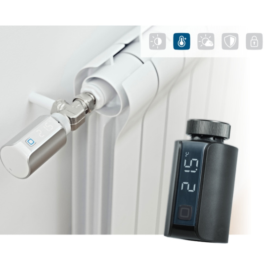 Hi-tech riešenie termostatických hlavíc Homematic IP spočíva predovšetkým v jedinečnom algoritme a krokovom motorickom ovládacom mechanizme. Nahrádzajú bežné termostatické radiátorové hlavice, riadia priestorovú teplotu v miestnosti a proces vykurovania podľa individuálnych potrieb, čo vedie k okamžitej úspore a zníženiu výdajov na energie až o 30 %.