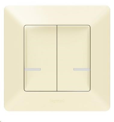 Valena Life s dvojitým bezdrôtovým spínačom osvetlenia Netatmo (batéria CR2032 a obojstranná lepenka sú súčasťou balenia) na ovládanie až 20 káblových zariadení (vypínačov/stmievačov, zásuviek, mobilných zásuvkových adaptérov, káblových zásuviek a osvetľovacích mikromodulov). Zadná strana je úplne plochá (možno ju pripevniť na stenu, sklo, nábytok pomocou skrutiek alebo obojstrannej lepenky) - farba béžová, dodáva sa s rámom v béžovej farbe