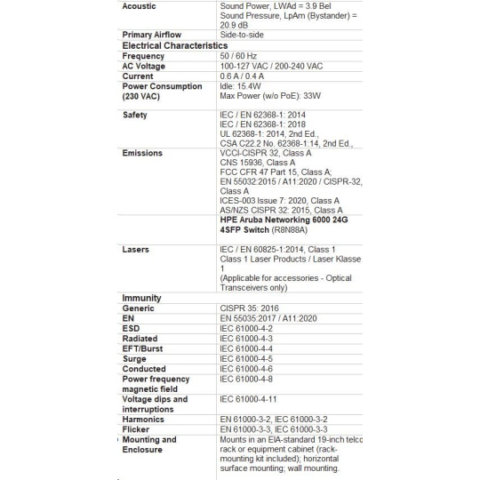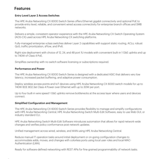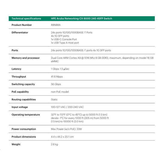 HPE Aruba Networking CX 6000 24G 4SFP Switch.