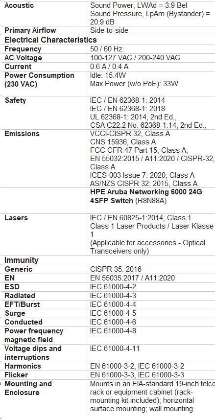 HPE Aruba Networking 6000 Switch Specifications