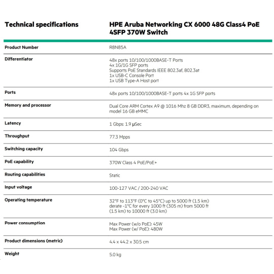 HPE Aruba Networking CX 6000 48G 4SFP Switch R8N86A
