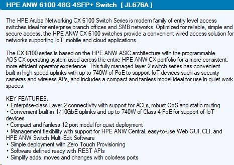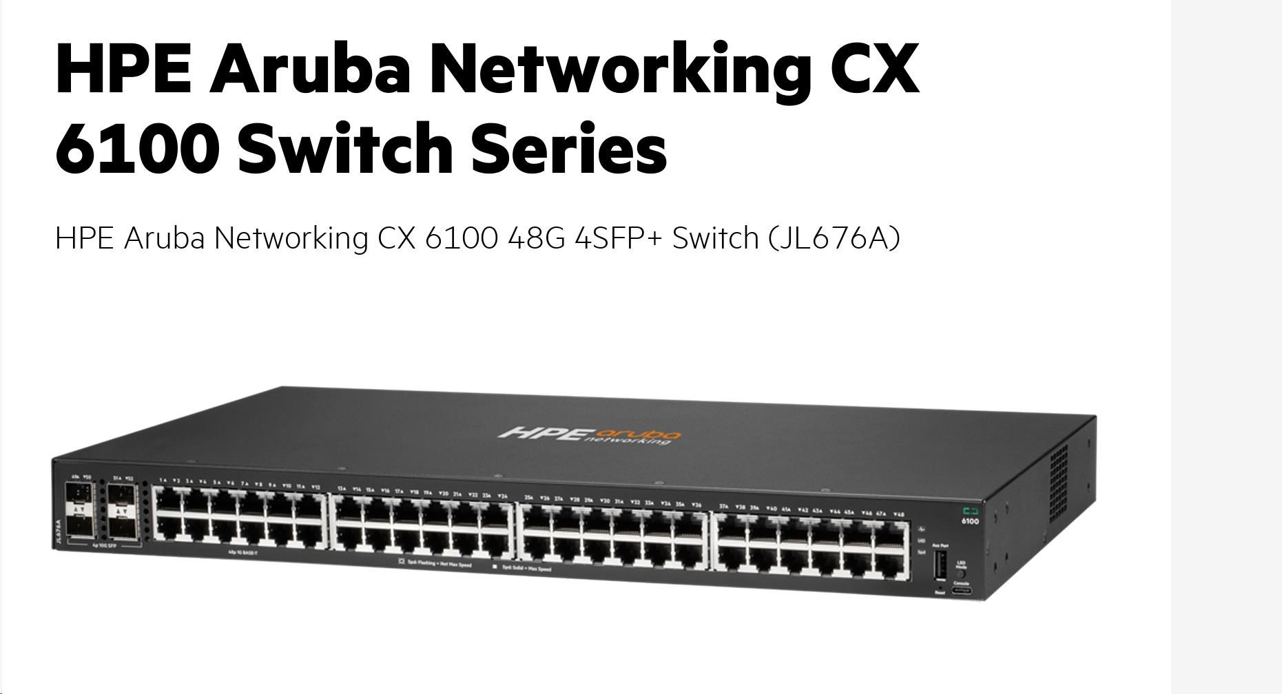 HPE Aruba Networking CX 6100 48G 4SFP+ Switch RENEW JL676AR#ABB.