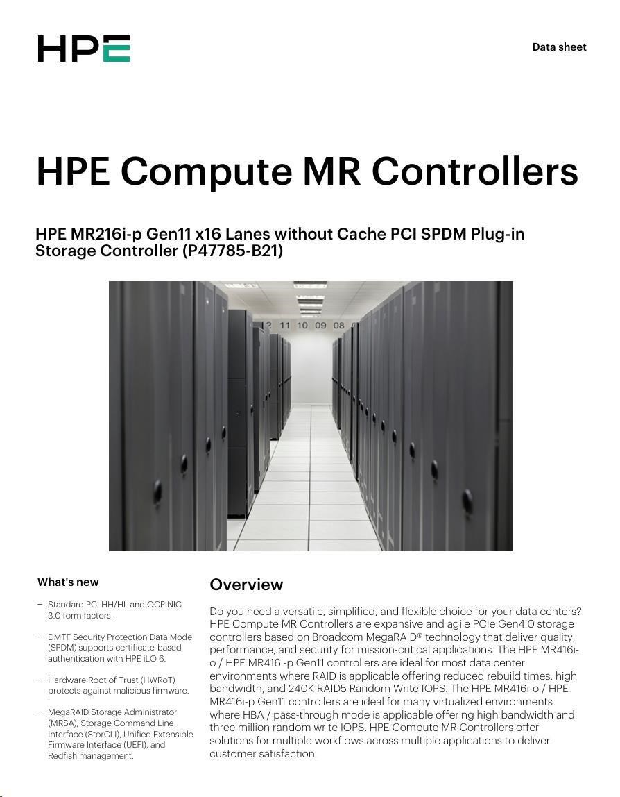 HPE MR216i-p Gen11 16 Internal Lanes/No Cache SPDM PCI Plug-in Storage Controller (raid 0,1,10 only).