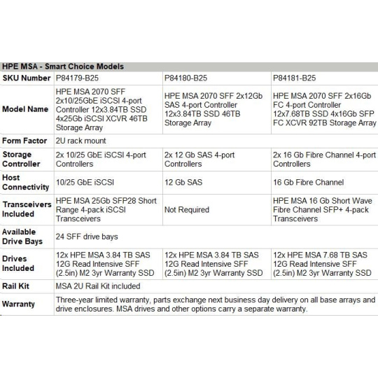 HPE MSA 2070 SFF 2x10/25GbE iSCSI 4-port Controller 12x3.84TB SSD 4x25Gb iSCSI XCVR 46TB Storage Array Smart Choice