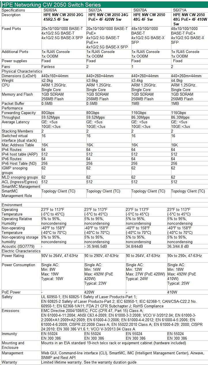 HPE Networking CW 2050 48p 10/100/1000BASE-T 4p SFP 1G/2.5G Switch.