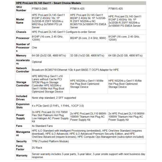 | Chassis | HPE ProLiant DL145 Gen11 Configure-to-order Server |