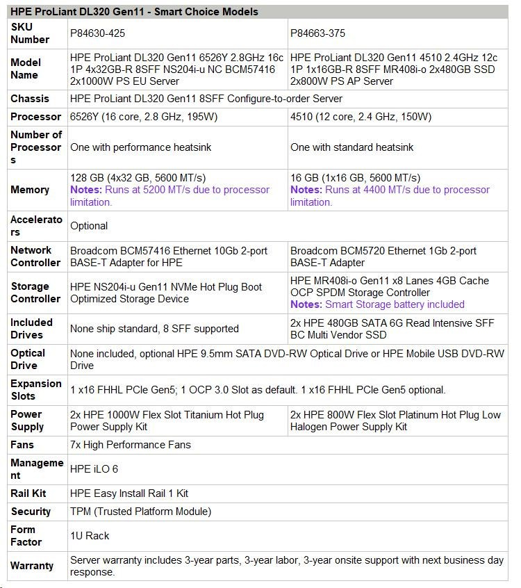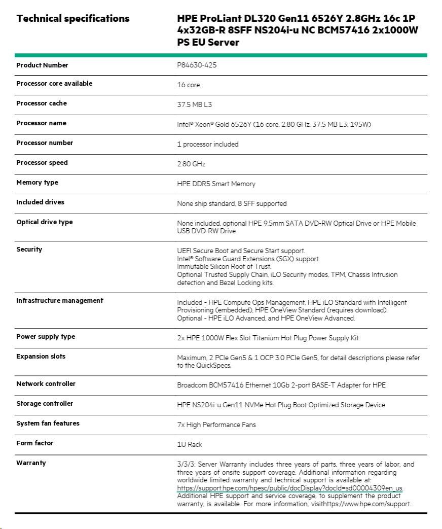 HPE PL DL320g11 6526Y (2.8/16C) 4x32G (p64706) 8SFF NS204(2x480G) 2x1000W 2p10GT 7F Smart Choice.