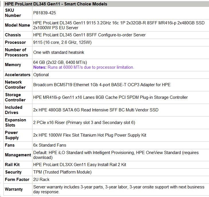 HPE PL DL345g11 AMD Epyc 9115 (2.6G/16C) 2x32G 2x480G (P40497) 2x1000W MR416i-p 8SFF 4p1G Smart Choice