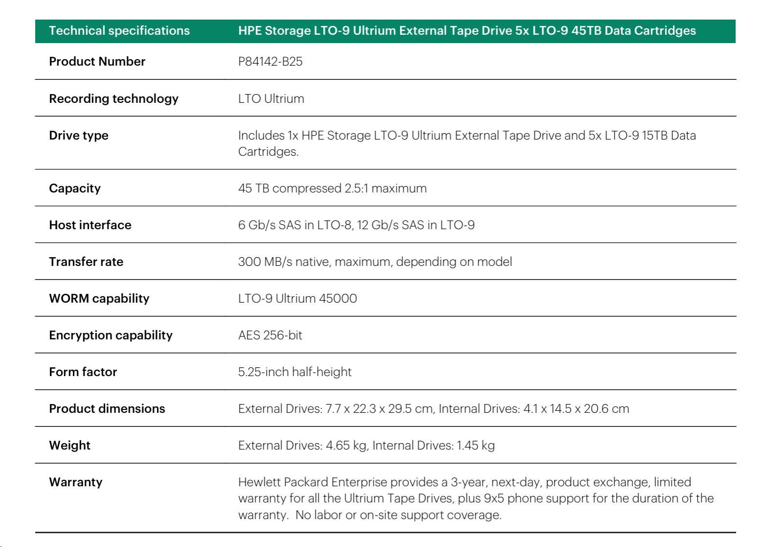 HPE Storage LTO-8 Ultrium External Tape Drive 5x LTO-8 30TB Data Cartridges.