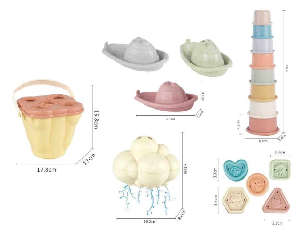 Sada hračiek do vody 5v1 v praktickom kyblíku premení každé kúpeľ na zábavnú hru. Loďky, kelímky a obláčik, uložené v kyblíku, ktorý je zároveň aj vkladačkou, sa postarajú o to, že kúpanie ve vaničke, vane alebo v bazéniku nebude nuda. K naberaniu vody, prelievaniu a polievaniu poslúžia stohovacie kelímky s číslami alebo kyblík, na vlnách sa pohupujú farebné loďky a z obláčika zaprší vždy, keď sa naplní vodou.