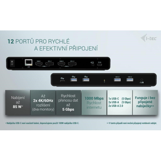 i-tec Univerzálna Dual 4K Display Docking Station + Power Delivery 85W