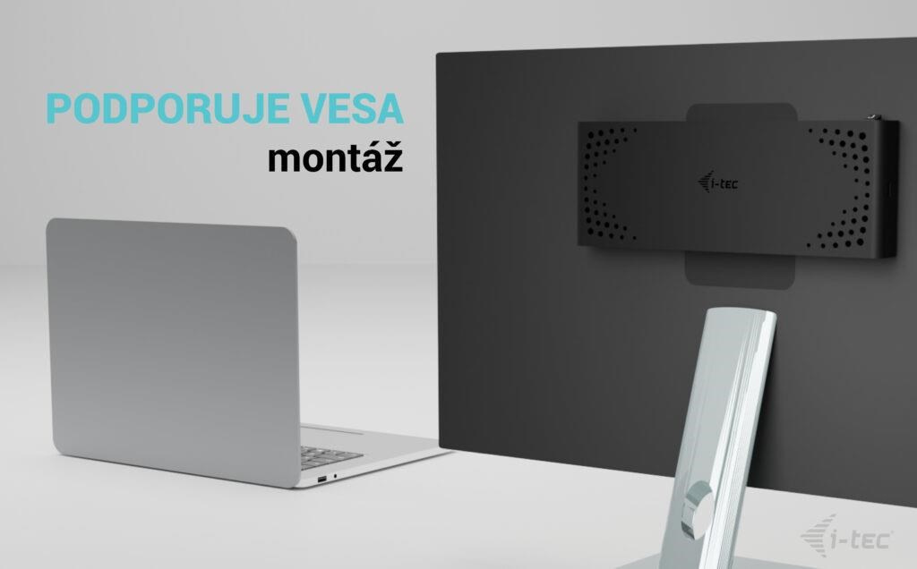 - Dokovacia stanica podporuje držiak VESA pre inteligentnú vertikálnu inštaláciu za monitorom s podporou VESA