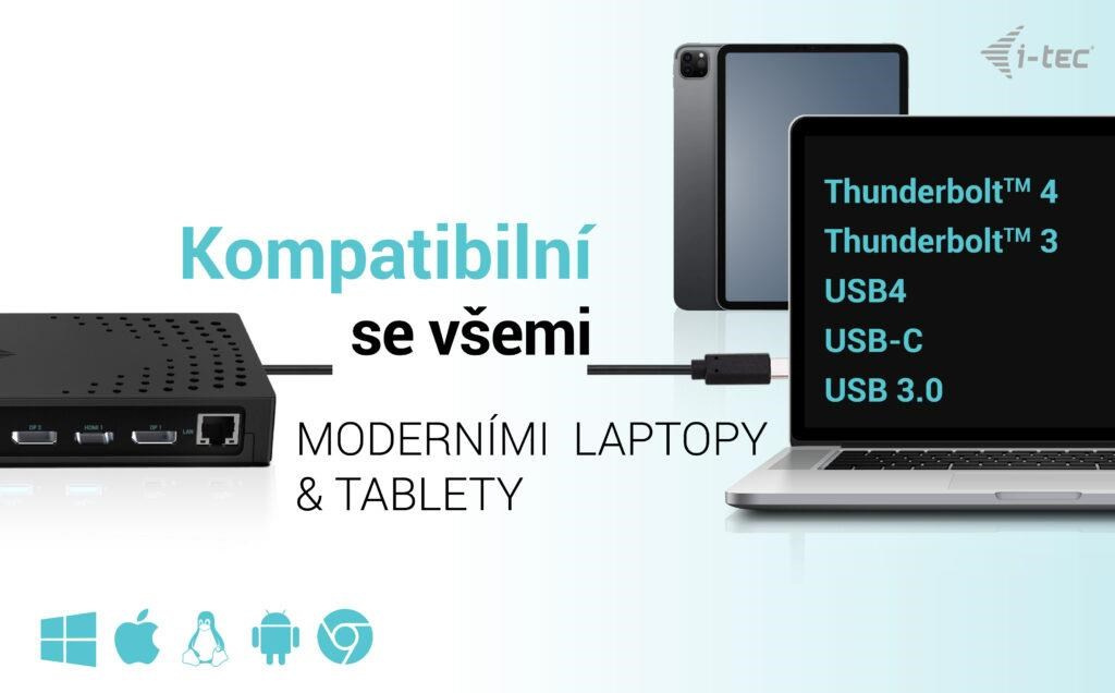 - Dokovacia stanica je kompatibilná so všetkými modernými notebookmi (pripojenie cez porty USB 3.0, USB-C alebo Thunderbolt™ 3/4).
