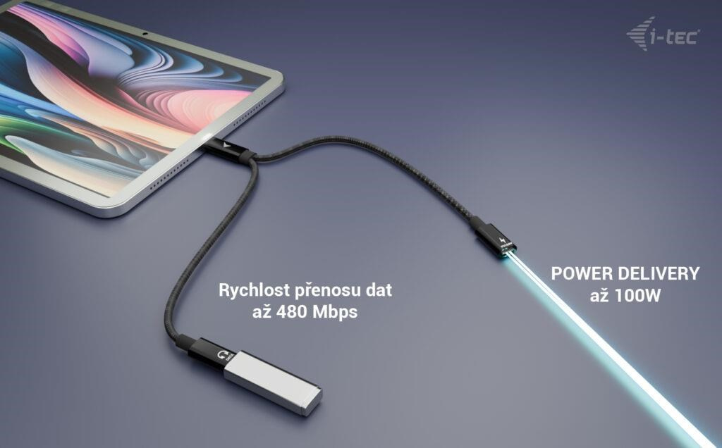 i-tec USB-C Kábel Splitter Audio/Data + Power Delivery 100W