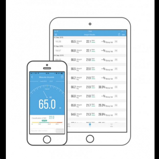 Analyzátor iHealth FIT je presné elektronické zariadenie určené pre dospelých. Využíva technológiu tenkých vrstiev ITO a tlakové senzory na plynulé vyhodnotenie zloženia tela na meranie. Výsledky sa zobrazia a uložia do zariadenia so systémom iOS alebo Android spolu s dátumom a časom merania.