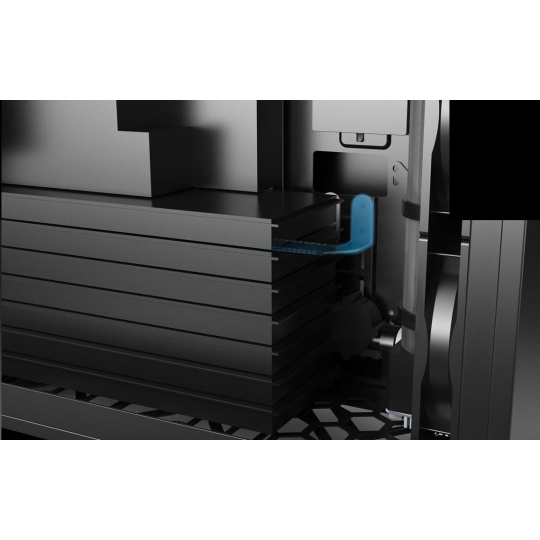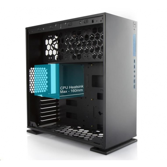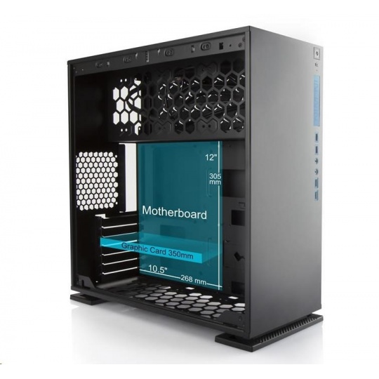 - Vnútri je priestor pre grafickú kartu s dĺžkou až 350 mm a chladič procesora s dĺžkou až 160 mm.