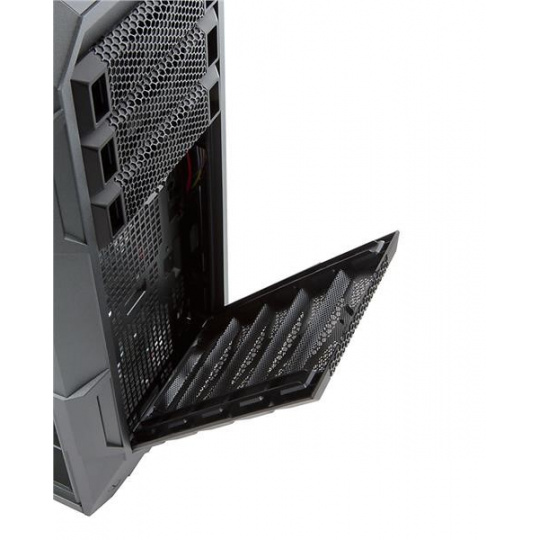 Herná počítačová skriňa Grone sa vyznačuje nielen veľkým vnútorným rozširujúcim priestorom, ktorý je možné vidieť cez priehľadný bočný rám, ale aj celkovo neohrozene originálnym vzhľadom. Skriňa obsahuje aj štyri predinštalované ventilátory, pričom dva predné ventilátory sú vybavené osvetlením LED.