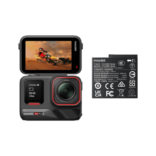 Insta360 Ace Pro 2 akční kamera, snímač 1/1,3", optika Leica, dotykový 2,5" displej, 8K při 30 FPS + akumulátor