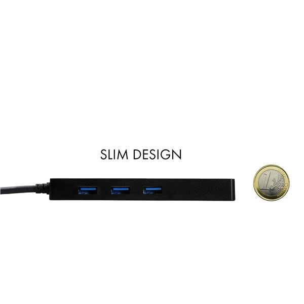 - Kombinácia pasívneho USB 3.0 HUB s gigabitovým ethernetovým adaptérom na jednoduché a rýchle pripojenie vašich obľúbených zariadení USB k notebooku/tabletu/PC pomocou jediného kábla USB a na vysokorýchlostný prístup k sieti a internetu prostredníctvom gigabitového ethernetu