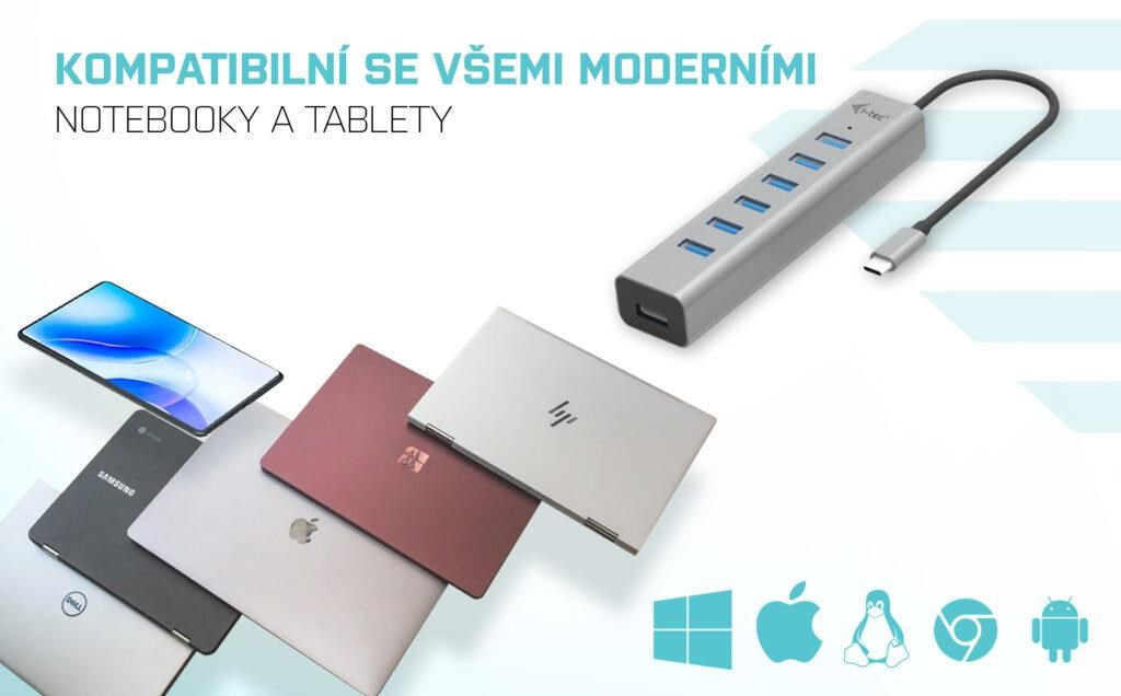 - HUB podporuje všetky bežné súčasné operačné systémy (Windows, macOS, Linux, Android, Chrome OS, iPadOS)