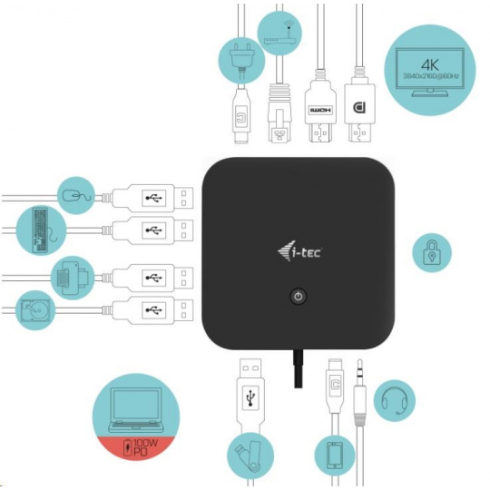 dokovacia stanica iTec USB-C HDMI DP, Power Delivery 100 W