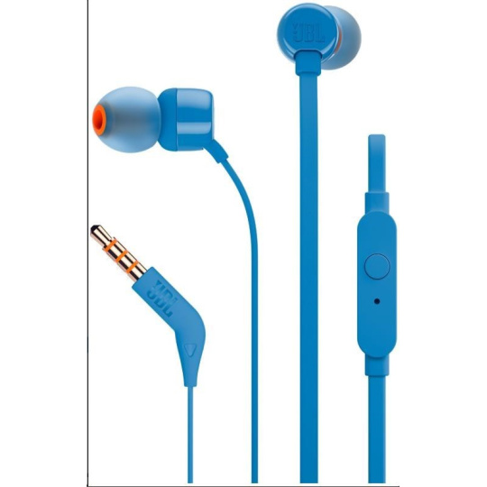 JBL T110 Black špuntová sluchátka, 3,5 mm jack, mikrofon, modrá