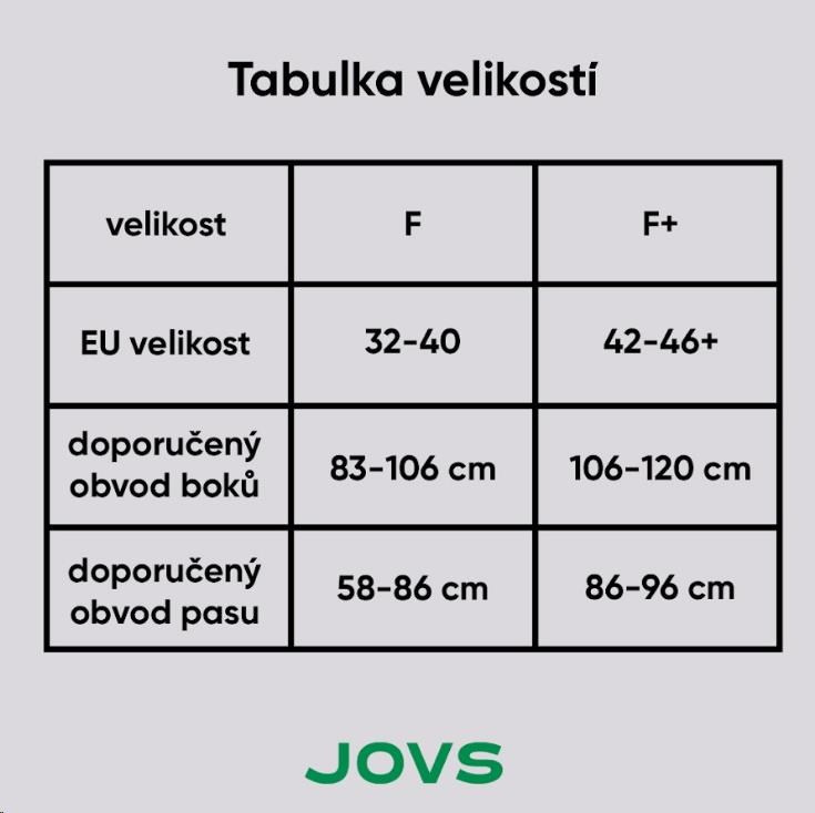 - Veľkosti: F (pre obvod bokov 66-85 cm), F+ (pre obvod bokov 80-90 cm)